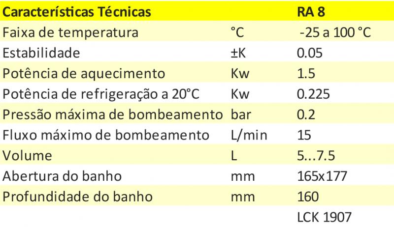 A faixa de temperatura de trabalho de -25 a 100ºC cobre grande parte das aplicações/necessidades de banhos termostáticos dentro de laboratórios. Possui circulação interna ou externa.