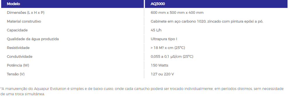 SISTEMA DE ULTRAPURIFICAÇÃO DE ÁGUA AquaPur Evolution AQ3000 PERMUTION